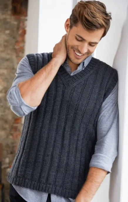 ПЕРЕД: вязать как спинку, но через 49 см от начального ряда разделить работу в середине для V-образного выреза горловины и обе стороны закончить раздельно.