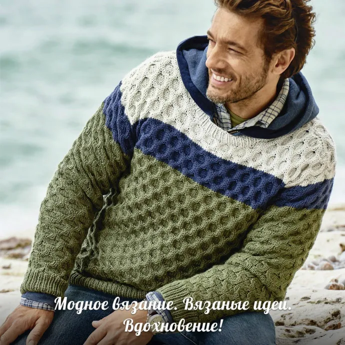 Рельефный узор и броское сочетание цветов обеспечивают универсальность этого классического мужского джемпера.