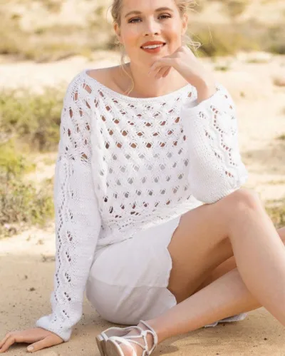 Шикарный пуловер ажурным узором.