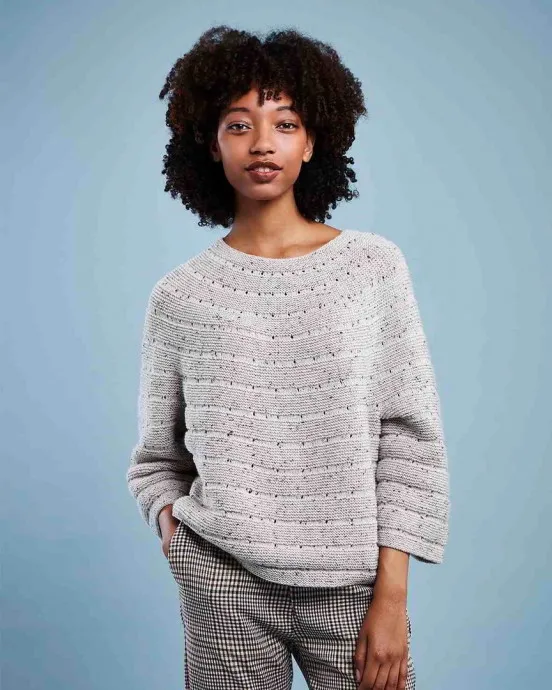 Далее вязать так, чтобы сохранять рисунок узора, но не увеличивать количество петель на спицах.
