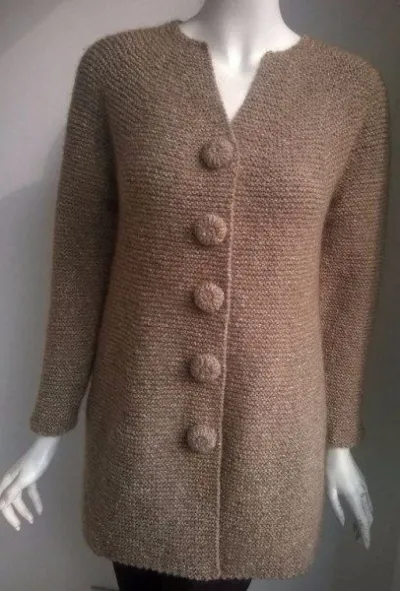 Можно вязать из любой пряжи: для размера S — от 700 грамм, для M — от 800 грамм, для размера L — от 900 грамм, ориентировочно в 100 граммах — от 140 метров, спицы 6 мм.