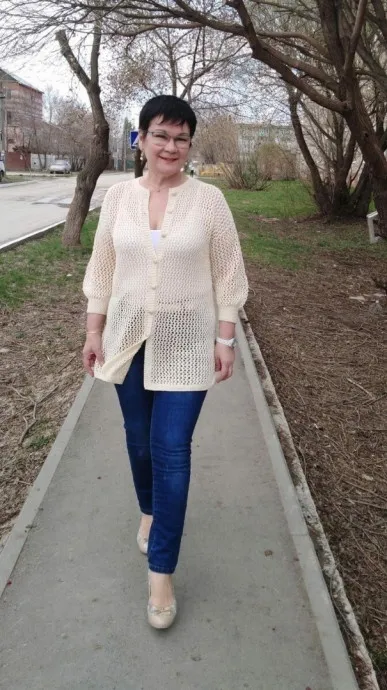 - С джинсами и топом: Это идеальное сочетание для повседневного образа. Легкий кардиган с сетчатым узором отлично смотрится с простыми джинсами и базовым топом. Это можно дополнить кедами или сандалиями для непринужденного и комфортного лука. Такой образ будет выглядеть стильно и свежо, особенно в летний день.