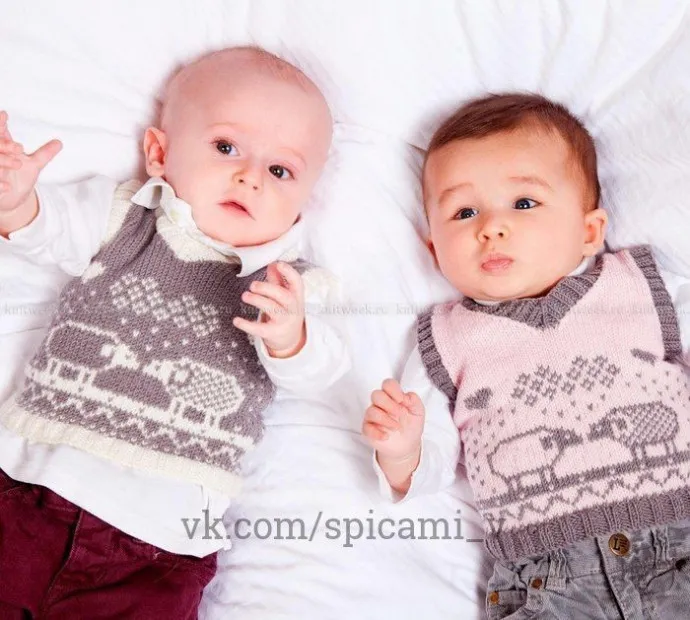 Безрукавка спицами с жаккардовым рисунком детская 3 мес - 5 лет