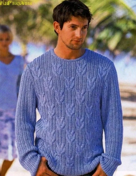Мужской пуловер спицами "Морские узлы"
