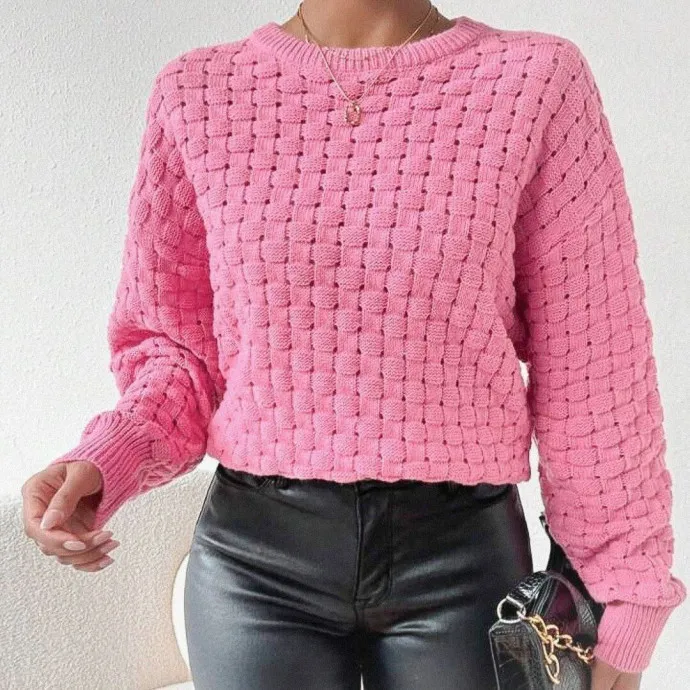 Розовый джемпер с плетёным узором: как носить и с чем сочетать