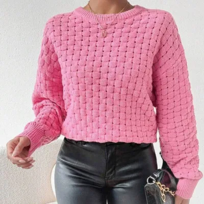 Розовый джемпер с плетёным узором — это не только уютная, но и стильная вещь в твоём гардеробе. Подбирай к нему простые, элегантные элементы и играй с аксессуарами. Правильно подобранная пряжа и сочетающиеся с ней вещи помогут создать комфортный и модный образ для межсезонья.