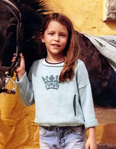 Детский джемпер спицами с прорезными карманами и жаккард короной