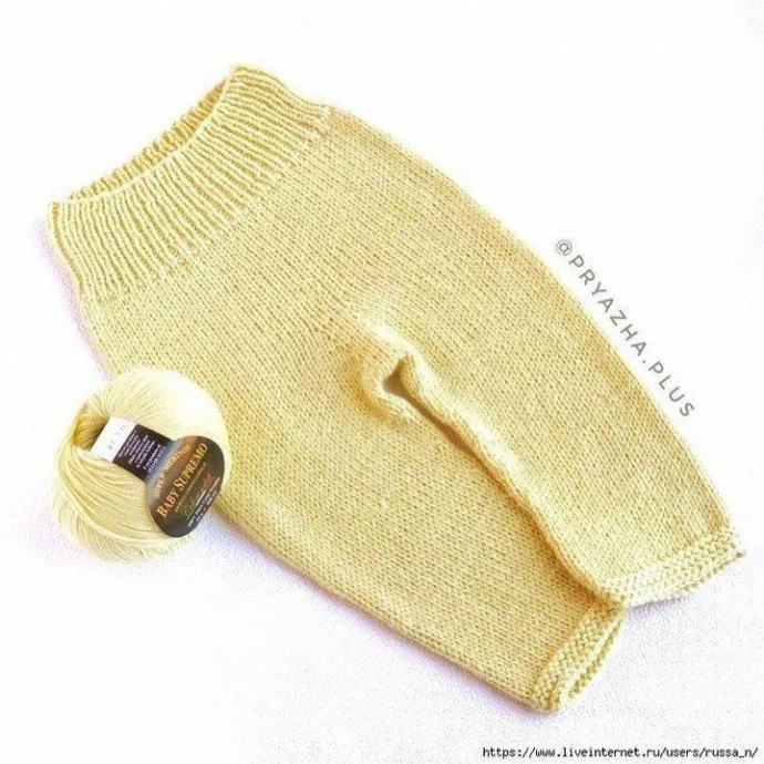 2. Довязав до нужной длины,закрываем петли низа и сшиваем ластовицу - любуемся своим произведением!!!Простые базовые штанишки готовы!