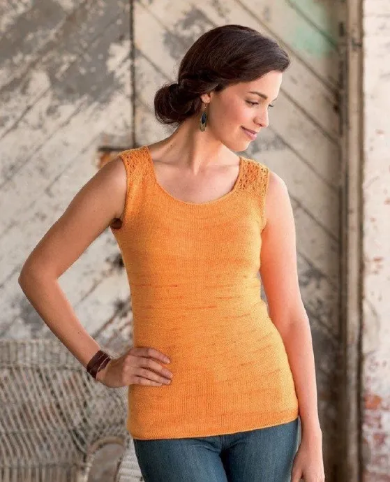 С изнаночной стороны продолжаем вязать по узору, пока плечо будет составлять 28 (30.5, 32.5, 35, 35.5) см от начала ажурной части, и 12.5 (14 14.5, 16, 16) см от сложившейся горловины, заканчиваем на изнаночной стороне .