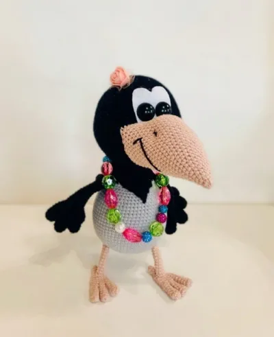 Если не любите пришивать детали, то в следующем ряду можно ввязать клюв.