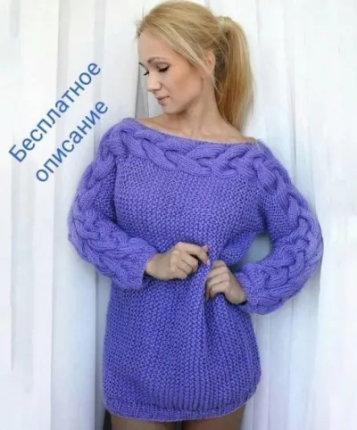 Начинаем с рукава: набираем 47 петель (посередине 2 косы из 12 петель каждая, между ними 1 изн, по краям платочная вязка). Вяжем до середины рукава, прибавляем по 3 петельки в каждую косу, итого получаем косы из 15 петель, в платочное полотно тоже добавляем по 1 петле)