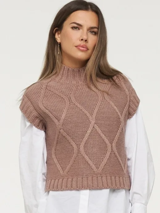 Первая безрукавка - российского бренда вязаного трикотажа VAY. Это самая простая модель из всей подборки, но заслуживает внимания. Она хорошо подойдет как для офиса, так и для повседневной носки с джинсами.