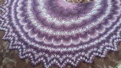 шаль выполнена из ниток Alize Angora gold секционного окрашивания с каймой от шали Шервуд. Девочки, прошу у вас совета, как считаете, выдержит блокировку или нет? состав пряжи 80% акрила и 20 % шерсти, сказали, что не будет держать блокировку, а ваше мнение?