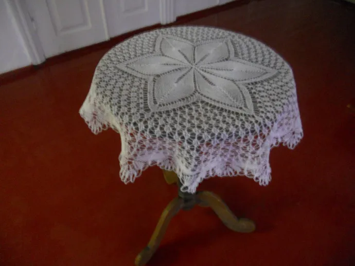 как то в инете попалась скатерть,я фото здесь выставляла,а мне на кофейный столик надо было что то связать, ну и вот что у меня получилось. серединки из разных остатков.а белые х\б ф...