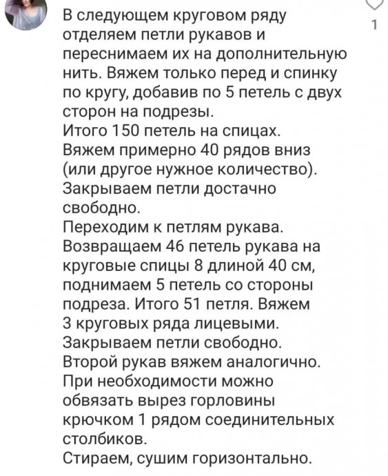 Если вам нужен больший или меньший размер, то провяжите большее или меньшее количество регланных прибавок, чтобы получить необходимое для вашего размера количество петель.
