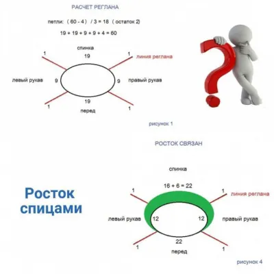 3. Вычитаем 4 петли на реглан: 60-4=56