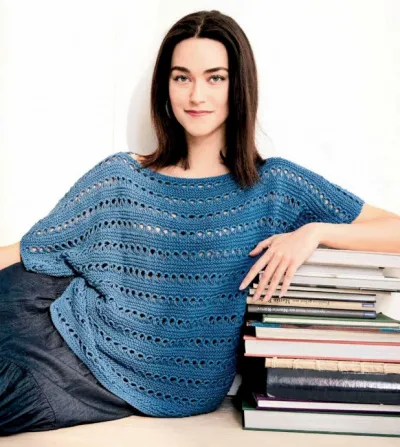 Какая красивая свободная футболка спицами с узором из спущенных петель