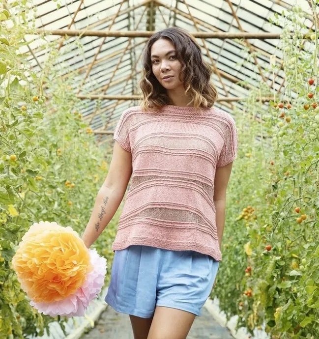 Комбинация пряж в сочетании с красивым волнистым узором позволила создать летний топ свободного покроя, возвращающий нас в ностальгическую атмосферу 80-х.