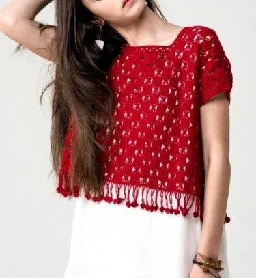 Ажурный топ с бахромой крючком: стильно и удобно!