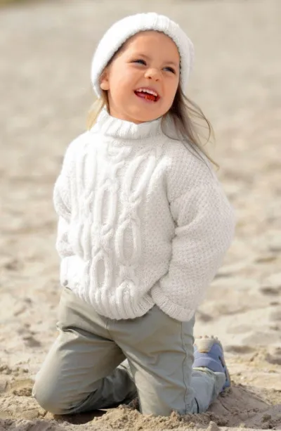 Пряжа (50% полиакрила, 40% натуральной шерсти, 10% ангоры; 175 м/50 г) 250 (300) 350 г белой; спицы №4,5; короткие круговые спицы №4,5; комплект чулочных спиц №4,5; 1 вспомогательная спица.
