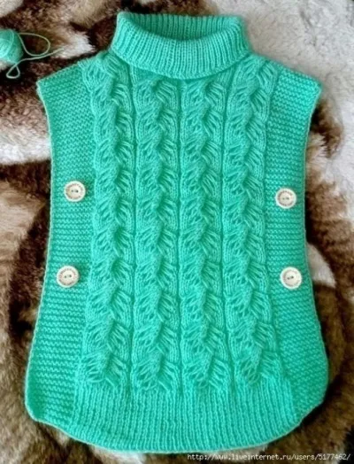 Жилет – пончо спицами для девочки от Елены Федосеевой, связан узором «Турецкая коса»