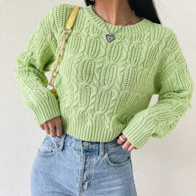 Салатовый джемпер с косами и патентной резинкой
