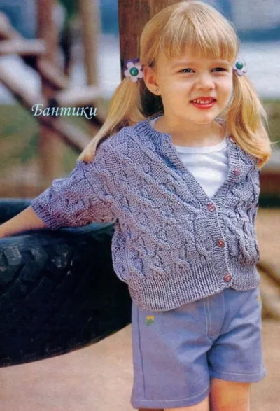 Вам потребуется: 200г. пряжи (100% акрил) лилового цвета и 5 пуговиц в тон; спицы № 3 и 3,5.