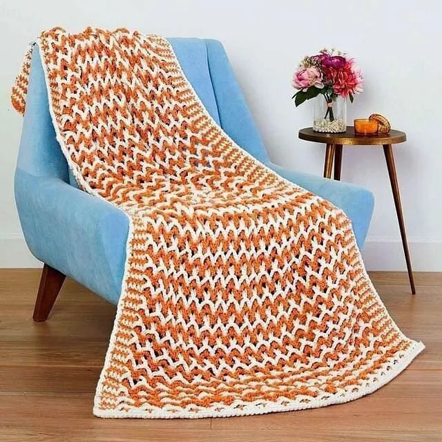 Плед крючком из белой и оранжевой пряжи: уют и тепло своими руками