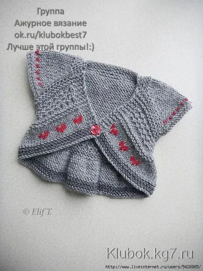 Небольшая душегрейка и текстурные узоры заставили Лизу задуматься о балетном прыжке «антраша", где ноги пересекаются друг с другом в воздухе и она создала этот восхитительный дизайн болеро для девочки.