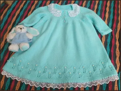 Связалось новое платьице для внучки. Пряжа Карамелька от Камтекс,акрил в 50г 175 м , цвет 073 лед, спицы 3 мм. Из этой пряжи вязала впервые-очень понравилось.Цвет лучше всего передался на первом фото.