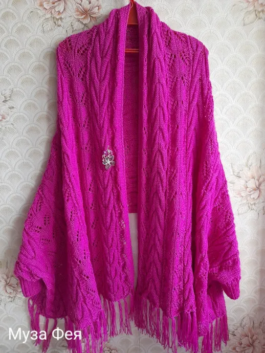 Сначала вяжется палантин нужной длины, потом по боковым краям нужно набрать петли и связать манжеты. У меня они связаны резинкой 1лиц, 1 изн.