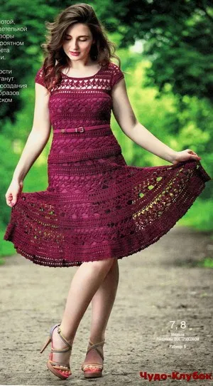 Вам потребуется: пряжа Violet (100% мерсеризованный хлопок, 282 м/50 г) - 600 г вишневого цвета, крючок №1,75, резинка для юбки - 50 см.