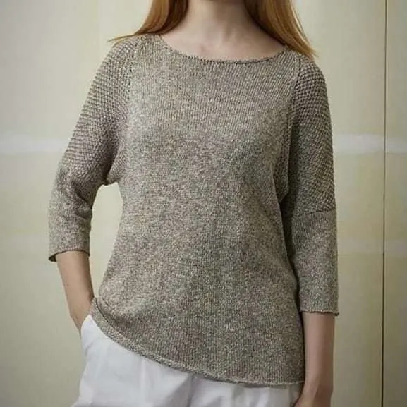Потрясающе красивый пуловер хейворд спицами, описание которого переведено на русский язык. Модель свободного силуэта, со спущенным плечом и рукавом 3/4. Вяжется он из шелковой пряжи, но можно выполнить его и из любой другой, в том числе шерстяной пряжи.