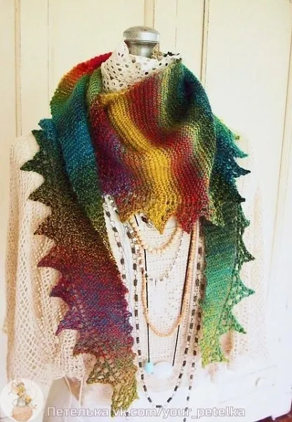 Бактус вяжется поперек, начиная с угла. Ажурная кайма вяжется одновременно с бактусом.
