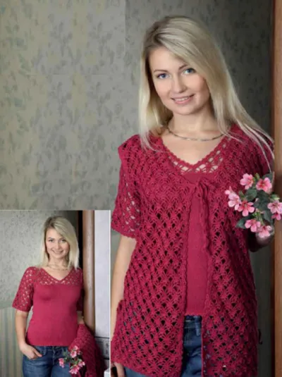 Женственный костюм: пуловер спицами и ажурная жилетка крючком