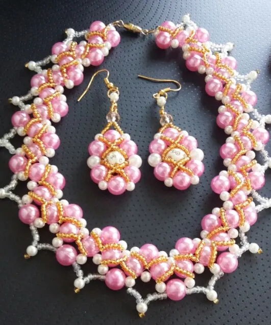 Решила сплести комплект из бусен и вот что получилось. Комплект плела для девушки под розовое платье. Колье она захотела в виде чекера. Что скажите?
