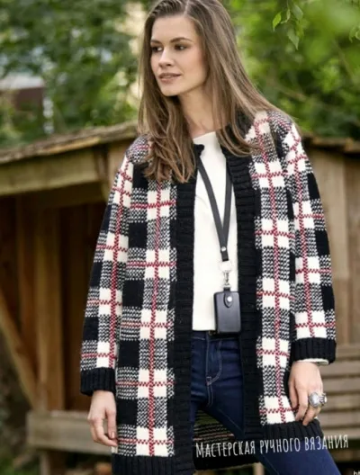 Жакет в клетку спицами