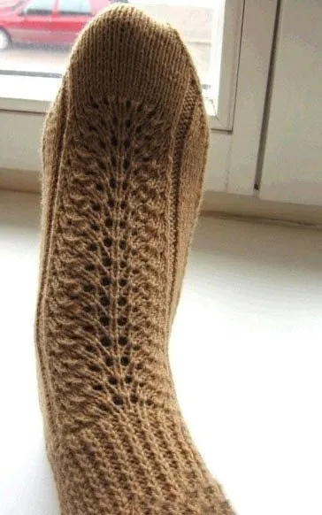 К несомненным преимуществам этого метода можно отнести возможность легкой реставрации износившейся пятки носка: швы подпарываются и пятка перевязывается.