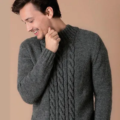 Классический мужской джемпер с довольно крупными косами наверняка понравится тем, кто любит беспроигрышные универсальные модели одежды.