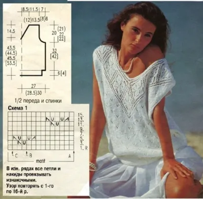 Вам потребуется: белая, с 30 % содержанием вискозы, пряжа: 400 (400) 450 [500 (500) 550] г.