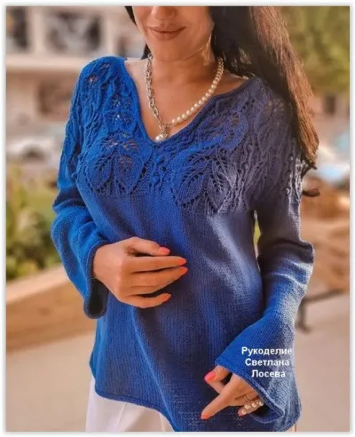 Вяжем шикарный джемпер с ажурной лиственной кокеткой