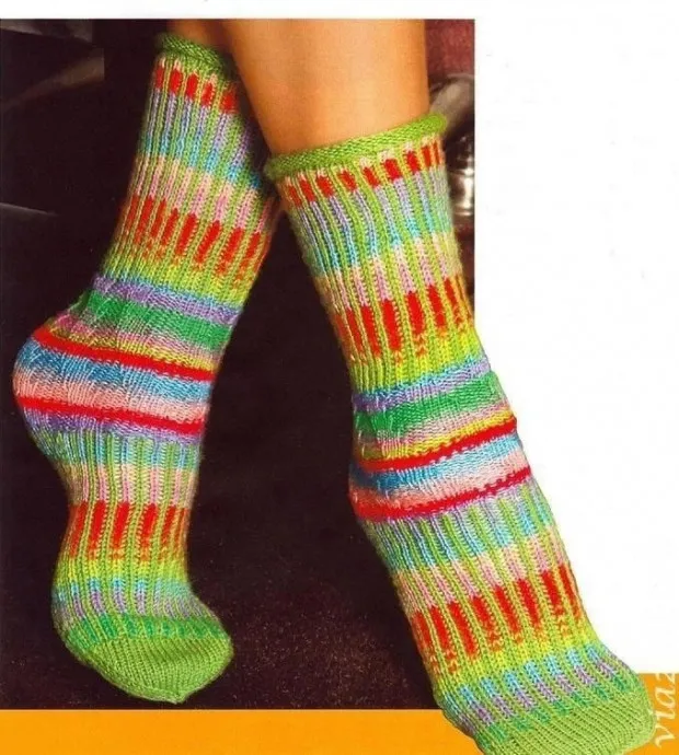По 100 г зеленой и разноцветной пряжи секционного крашения (75% шерсти, 25% полиамида, 210 м/ 50г);