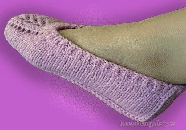 Примечание: Пряжа Пехорская № 16/2 (780 м) бобинная 4П14 в 3 нити. Подошва - в 4 нити. Расчет дан на 39 размер. Менять размер можно убавлением/прибавлением количества наборных петель. Остальное вяжется без изменения. На 7-ми центральных петлях носовой части можно выполнить рисунок в виде дырочек или косички.