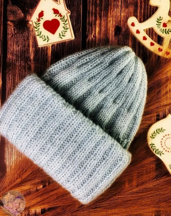 Тёплaя шaпкa c oтвoрoтoм, вяжем cпицaми