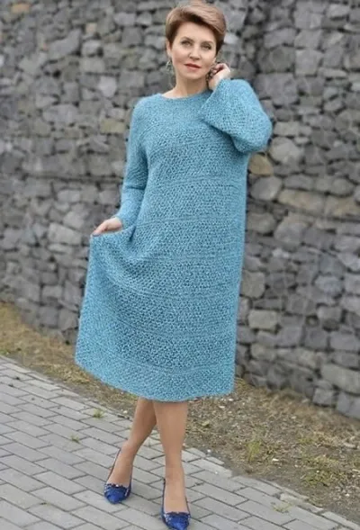 Модель Олеси Данилюк. Это платье можно связать без воротника. Отдельно связать снуд и использовать его в качестве дополнения к платью.