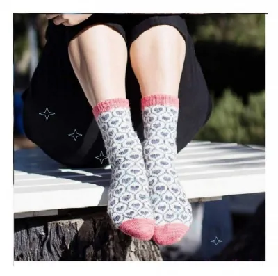 Скромное очарование отличает вязаные носки с жаккардовым рисунком из сердечек.