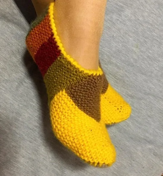 Всего у меня тельце тапочка 36 рядов или 18 рубчиков. На 37 размер при моей плотности вязания этого достаточно.