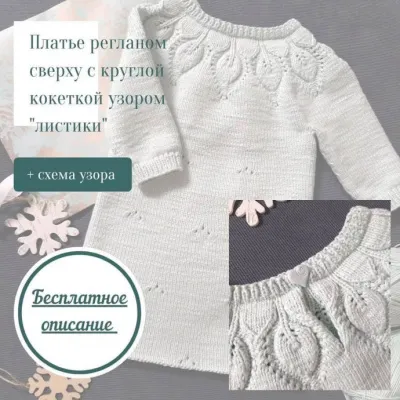 Платье вяжется регланом сверху. Начинаем вязать с круглой кокетки узором "листики" (фото 2).