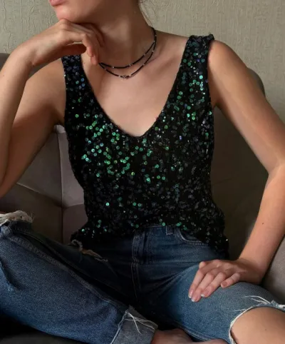 Топ из королевских пайеток на хлопке