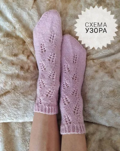 Паголенок можно вязать весь ажурный , а можно использовать сразу схему #2 и пустить узор только по центру носочка. вяжем на необходимую высоту. На пятку оставляем 21 петлю. Распределяем петли так, чтобы рисунок не нарушился.